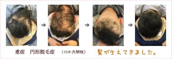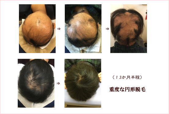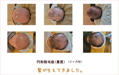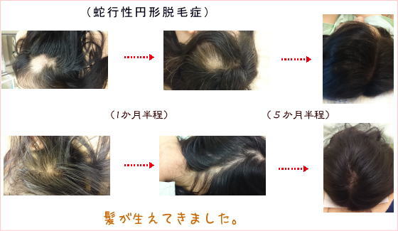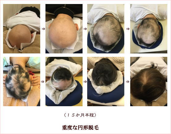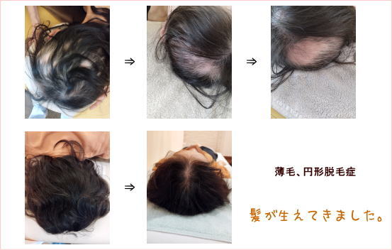 髪は血余なり(髪の毛の原料は血液で、身体をめぐった血液の余った分が髪の毛になる)という中国医学の考えのもと、円形脱毛症の鍼灸治療を行っています。鍼灸で患部の毛包周囲の毛細血管を刺激するという治療法は、その有効率がかなり高いです。中国医学においては、「髪の毛は腎が司る」そうなので、脱毛の治療とともに全身の血行促進も促せます。
