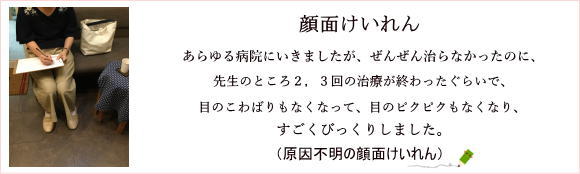 当院で顔面けいれん鍼灸施術の通院後の感想をお聞かせ下さい。